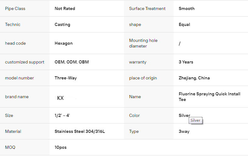 / Factory Direct Sale Fluorine Spraying Quick Install Tee SUS304 316L Smooth Polishing Sanitary Stainless Steel 3 Way Equal Silver