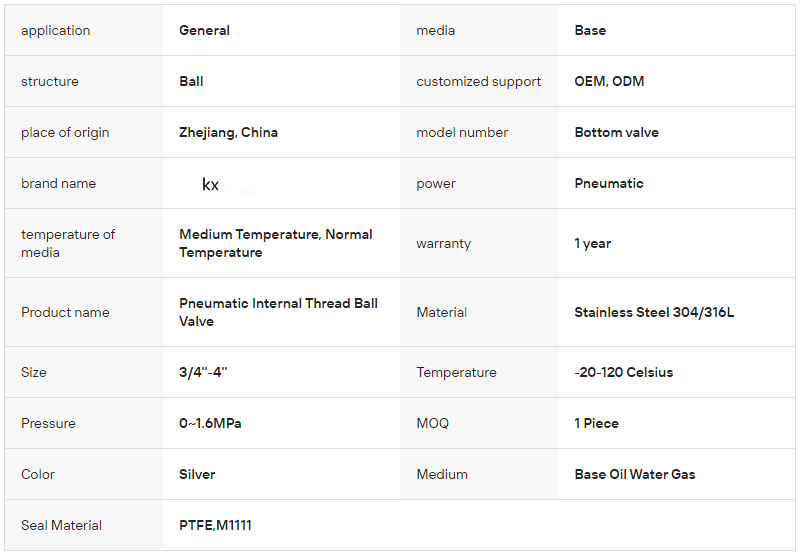 / High Quality OEM Stainless Steel 304/316L High Temperature Pneumatic Internal Thread Ball Valve with Base Application