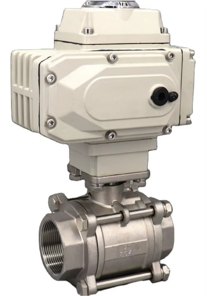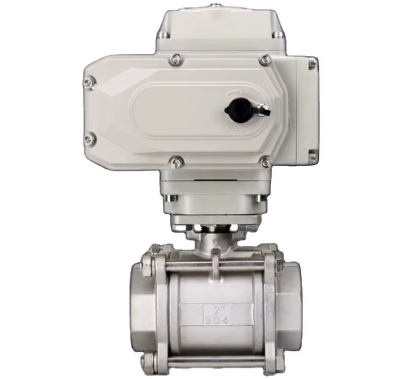 Stainless Steel 3 Piece 2 Way Ball Valve with Electric Actuator Thread Motorized Base Media Tank Bottom Valve OEM